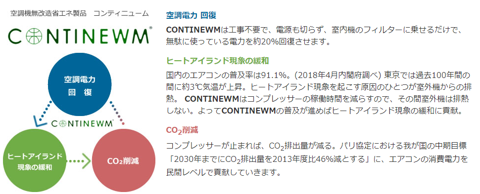 空調機無改造省エネ商品:CONTINEWM(コンティニューム)